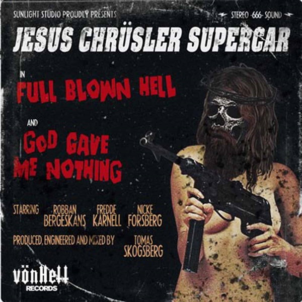 The Swedish Death ’n’ Roll infernal machine JESUS CHRÜSLER SUPERCAR continues to race at full throttle on the dusty asphalt of the Rock ’n’ Roll highway. Led by their axe-swinging frontman Robban Bergeskans, the Stockholm pack consisting of drum machine Nicke Forsberg and former Refused and The Bones guitarist Pär Jaktholm has once again entrenched itself in the legendary Sunlight Studio, to record the furious successor of their ruthless album “35 Supersonic”, this time mixed by Nicke’s brother Fred Forsberg from Fvck Life Studios (Mass Worship, Anchor, Gust) together with producer legend Tomas Skogsberg (Entombed, The Hellacopters, Amorphis). For the tough American tone it was banked on Brad Boatright from Audiosiege (Converge, C.O.C., Black Tusk) for the mastering. The result is a malicious, fierce album that merges its various musical influences from dirty Heavy Rock, Doom, Stoner and old school Death Metal into a unique diabolical brew. It is not without reason that album no. 3 bears the clear title “Lücifer”.